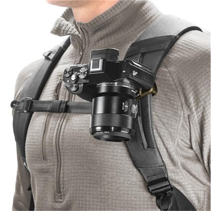 Carry binoculars, lenses, and GoPro cameras with additional plates/kits (sold separately)