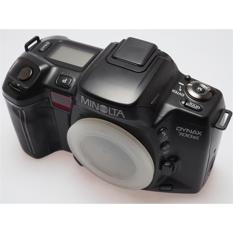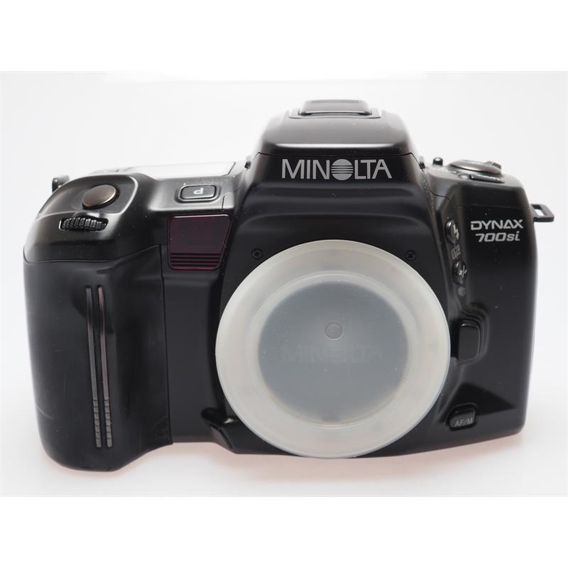 Released in 1993, the Minolta 700Si is one of the higher end generation 4 models in the 35mm SLR range and was marketed as the world's smallest 35mm SLR camera at the time. Extremely user friendly it was aimed at both professional and amateur photographers. WHile it included the expandable card system, many of the most required features were already included in the camera. Camera Type: Single Lens Reflex camera Film Size: 35mm Lens mount: AF AF: yes Film Rewind: automatic Flash: built in Power Source:1 x 2CR5 lithium batteries Dimensions (mm): 165 x 98 x 72 Weight (g): 595