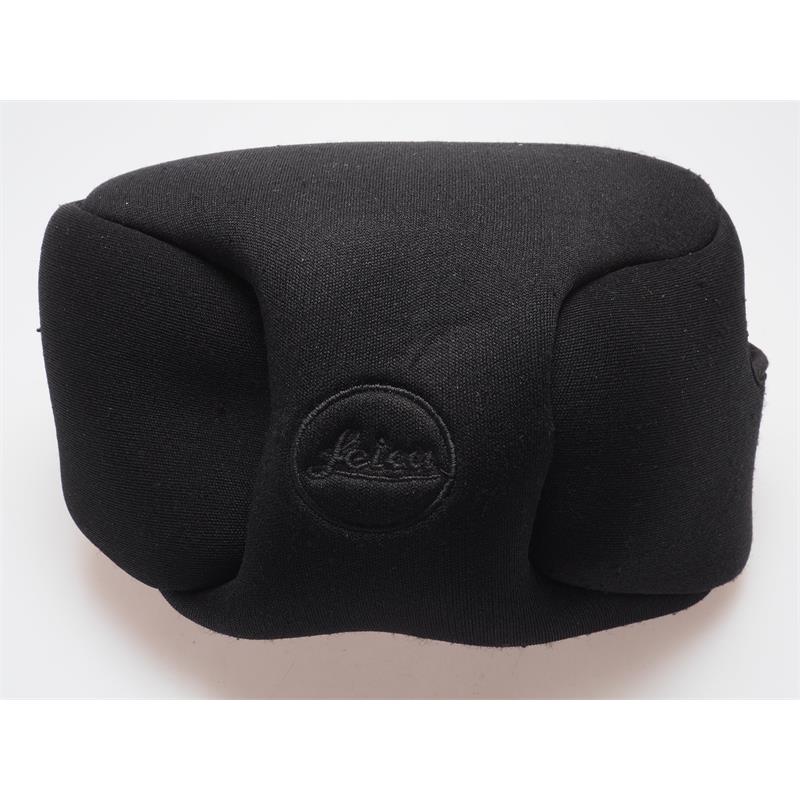 The Leica Neoprene Case M with Short Front (Black) is a fitted neoprene case made to protect and carry a Leica M series digital camera with a lens up to 86mm. When the stretch covering is removed, it hangs on a loop on the camera's carrying strap to make sure it is not lost. The neoprene case is not only an effective second skin for the camera and lens but also has room for two SD memory cards. The case can be stowed into any piece of baggage.