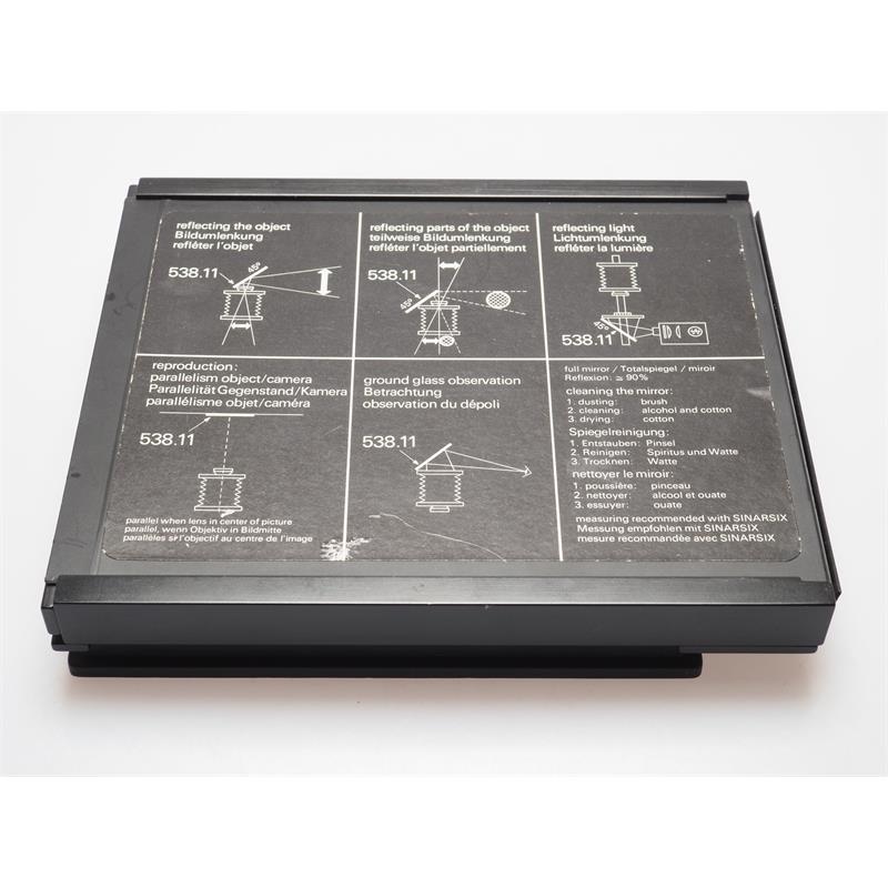 With the Simar front-surfaced mirror the view camera can 'look round the corner' or reflect a subject into and image for a special effect. 12x15cm mirror, fits 4x5 standards.
