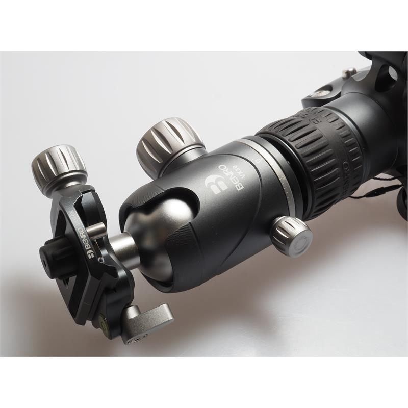 The VX30 Dual Panoramic ball head features dual panoramic mode, which allows panning head from its base and also from the quick release platform. The controls are simple, with ball friction adjustment built into the main lock knob, plus an independent pan lock. It includes a PU60X quick release plate and features a quick release plate safety lock.