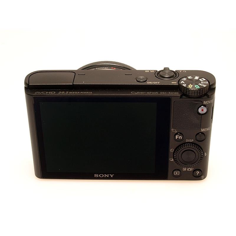 Housed in a sophisticated aluminum body, the Sony DSC-RX100 Digital Camera (Black) features a 20.2 megapixel Exmor CMOS image sensor that excels in ultra low-light situations. It's equipped with a brilliant f/1.8 Carl Zeiss Vario-Sonnar T Lens with a focal length of 10.4-37.1mm (35mm equivalent: 28-100mm). It also has an integrated pop up flash. You can record ultra high-definition still images in JPEG format, RAW format, or even both simultaneously. The camera also affords Full HD 1080p video capture at 60 frames per second (fps). Plus, it supports a full range of controls for video and still shooting that range from iAUTO to P/A/S/M (Program, Aperture Priority, Shutter Priority and Manual). The RX100 is loaded with shot-enhancing features and high-quality components. The Exmor CMOS image sensor and refined BIONZ image processor work together to facilitate fast DSLR-like focusing speeds even in low-light - and without sacrificing any detail. The lens supports 3.6x optical zoom and 7.2x clear image digital zoom. It also features a multi-layered T coating that dramatically reduces ghost and flare caused by light reflection. For added convenience, the RX100 is equipped with a 3" Xtra Fine LCD display so you'll be able to quickly scroll through menus and pictures. The display even features WhiteMagic technology for increased visibility under intense sunlight. Other features include a customizable function button that supports up to seven different functions and a memory recall (MR) that can memorize up to three groups of preferred settings. The camera also features Optical SteadyShot with Active Mode, which eliminates blurry images when you're walking with the camera. Sony's even bolstered the image stabilization with an electronic image stabilization that affords blur-free movie shooting and steady zooming in unsteady situations. You can use the Auto Portrait Framing function to capture an additional, beautifully framed and balanced full resolution portrait, when you're out shooting stills. The camera also supports four focus modes, auto HDR, multi-aspect ratio recording, a digital level gauge, multi-frame noise reduction and much more. Sony designed the DSC-RX100 for capable photographers looking for a high-end compact camera to take on the go. Anyone who spends a lot of time shooting family and friends will also appreciate the camera's Face Detection and Face Registration technology. The RX100 can detect and register up to eight faces. Plus, it will automatically adjust focus, exposure, white balance and flash to ensure you get a clear and crisp shot of those closest to you. You can even tell the camera to prioritize children or adults. With a laundry-list of features and excellent components, the RX100 offers amazing quality and creative freedom in a stylish, compact package. Megapixels: 20.2 Sensor type: CMOS Resolution: 5472 x 3648 Optical zoom (x): 3.6 Focal length (tele): 100 Focal length (wide): 28 Image stabilization: Yes Max aperture (tele): 4.9 Max aperture (wide): 1.8 Minimum focus distance: 5 cm Shutter speed max: 1/2000 sec Shutter speed min: 30 sec ISO min: 100 ISO max: 25600 Viewfinder type: LCD Screen size (inches): 3.0 Screen resolution (pixels): 1228800 Flash type: Built-in Movie mode: 1080p Card format: SD/SDHC/SDXC, Memory Stick Duo/Pro Duo/Pro-HG Duo File formats: JPEG, RAW, RAW+JPEG Connectivity: USB 2.0, HDMI (Mini Type C) Battery model: NP-BX1 Size: 102 x 59 x 36 mm Weight (g): 213