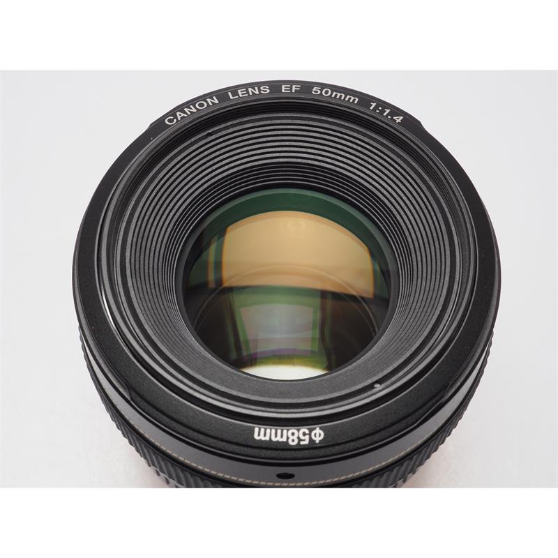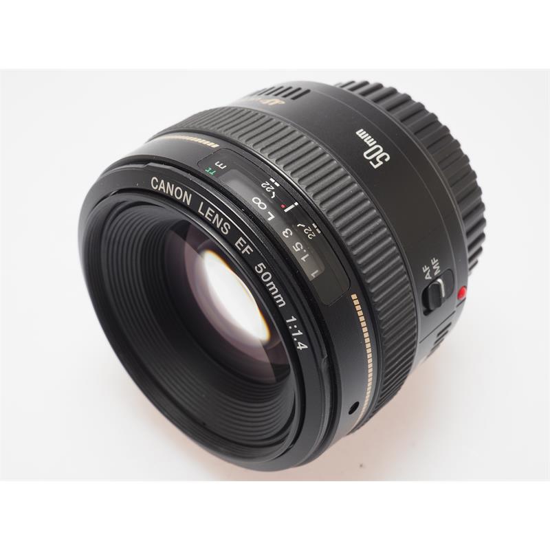 With its fast maximum aperture and rapid focusing system, the compact, high performance EF 50mm F1.4 USM standard lens can be relied on for superb performance in any field of photography. Features Fast F1.4 aperture Standard 46° angle of view USM focus motor with full-time manual focus override 45cm closest focusing distance Aspherical lens element 58mm filter size The ultimate mixture of versatility and image quality. Versatile, compact standard-lens design Gaussian optics, combined with two high-refraction lens elements allow photographers working in all fields to capture crisp, clean images, even wide open at f/1.4. The lens is ideal for photographing landscapes and travel scenes as well as portraits and reportage. Ultrasonic focusing A ultrasonic motor drives autofocus extremely quickly, and in near silence. Excellent holding torque ensures the point of focus is reached accurately, without overshooting. Furthermore, full-time manual override is available, making it possible to adjust focus without leaving AF mode. Smooth background blur A virtually circular aperture diaphragm gives out of focus regions a softer, more uniform feel. Sharp foreground objects stand out against a smooth blurred background. Super Spectra coating Super Spectra coatings ensure accurate colour balance and enhance contrast. They also reduce flare and ghosting – a common problem caused by light bouncing off a camera's sensor