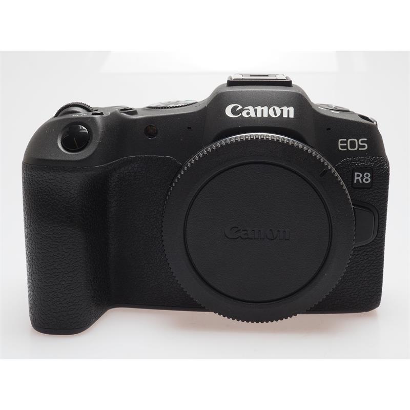 EOS R8 - Make the leapThe EOS R8; our lightest ever full-frame mirrorless camera will help enthusiasts and student step up to full-frame photographyand video and realise their creative ambitions. It offers new ways to shoot for anyone stepping up from DSLR or APS-C cameras. This hybrid camera combines professional features and high-performance full-frame capabilities from the EOS R6 Mark II with lightweight compact design. The EOS R8 deliver outstanding 24.2-megapixel photos and oversampled 4K 60p video that will take your content creation to the next level.Our unique Dual Pixel CMOS AF II recognises and tracks subjects, whether you're working in low light, shooting video or capturing action at up to 40fps. Key Features: Full frame 24.2-megapixel CMOS sensor. Full width 6K oversampled 4K 60p video recording and 180fps Full HD recording. Up to 40fps continuous shooting with electronic shutter. High resolution 2.36 million dot EVF runs at up to 120fps maximum refresh rate. Dual Pixel CMOS AF II with Intelligent subject detection for animals, vehicles and people including horsed, planes and trains Wi-Fi and Bluetooth for always on connection. Lightweight design, heavyweight features. Our lightest full frame camera yet, at just 461g the EOS R8 is great for content creators anyone shooting events on location. A dedicated switch lets you swap between photo & video modes, retaining settings in each. Supreme 4K and FHD video capabilities Stand out from the crowd with stunning oversampled 4K video from 6K at up to 60p. Full HD video up to 180p with recording time up to 2hrs, 3-5 sec pre-recording pro-filmmaking tools such as Canon Log 3. Intelligent focusing that's simply smart The Dual Pixel CMOS AF II recognises subjects even near the edges of the frame & tracks them even if they briefly vanish from view. Shoot portraits or interviews & the AF locks on to a subject's eyes, face, head or body. Stay connected to your workflow Control, share, & stream content seamlessly with 2.4GHz Wi-Fi, always on 4.2 Bluetooth, UVC/UAC plug & play,and Multi-Function Shoe for direct connection and powering accessories to level-up your content. Specifications: Image Processor: DIGIC X Sensor Type: CMOS Effective Megapixels: 24.2 Shutter Speed, Maximum: 1/16000 Shutter Speed, Minimum: 30 Sec ISO Maximum: 102,400 ISO Minimum: 100 Exposure Compensation: +/-3 EV in 1/3 or 1/2 stop increments (can be combined with AEB) Aspect Rat/span: 3:2 Autofocus System: Dual Pixel CMOS AFII Connectivity: See Manufacturers Specifications Lens Mount: Canon RF Memory Card Format: See Manufacturers Specifications View Finder Coverage: 100% Screen Size (Inches): 3" Screen Resolution (Pixels): 1620000 Battery Model: Rechargeable Li-ion Battery LP-E17 Flash Metering: E-TTL II Auto Flash, Metered Manual Flash Sync Speed: 1/200sec HD Movie Mode: See Manufacturers Specifications Dimensions: Size W H D(mm): 132.5 x 86.1 x 70 Weight (g): 461
